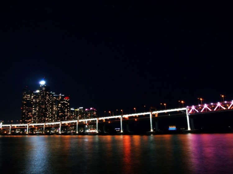 入夜後擁有絢爛光線的廣安大橋,讓我們放下相機,靜靜地望向已經看不清楚的海平線。談笑聲和海浪聲交疊,看得入迷的我們連手上的啤酒都忘了喝完。