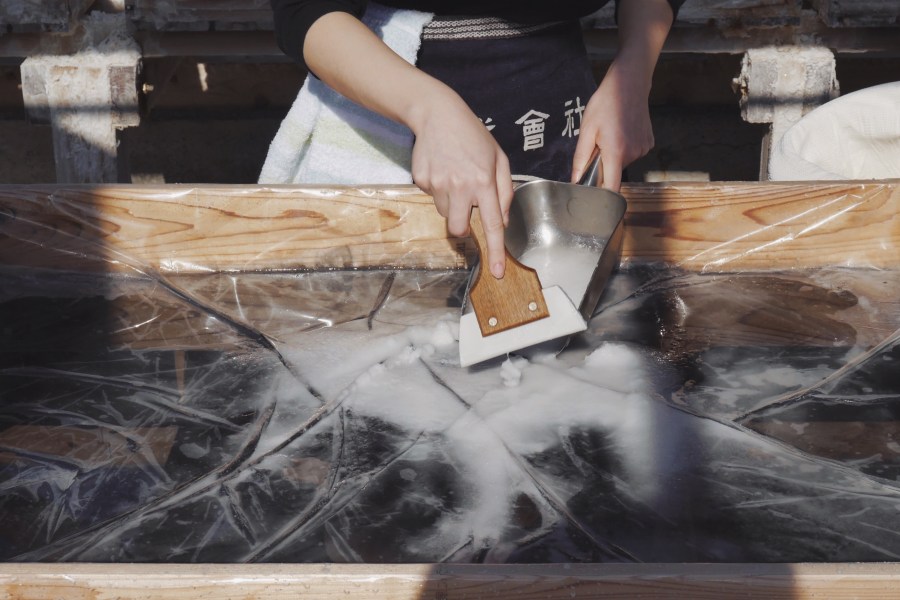 在幡多郡黑潮町的海岸旁,有一間製造「天日鹽」的工房佇立在此,所謂天日鹽即是使用水質良好的海水,僅以天然日曬的方式製鹽。
