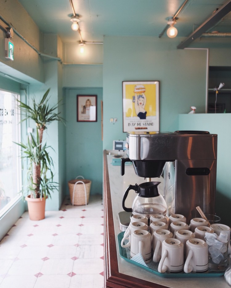 店內整體相當明亮,薄荷綠的牆面色調增添了度假感。這裡從早上8點就開始營業,早上11點前提供多種特製早餐,午晚間則以供應熱烤三明治和飲品為主,早餐和午餐時段都有附一杯咖啡或紅茶。