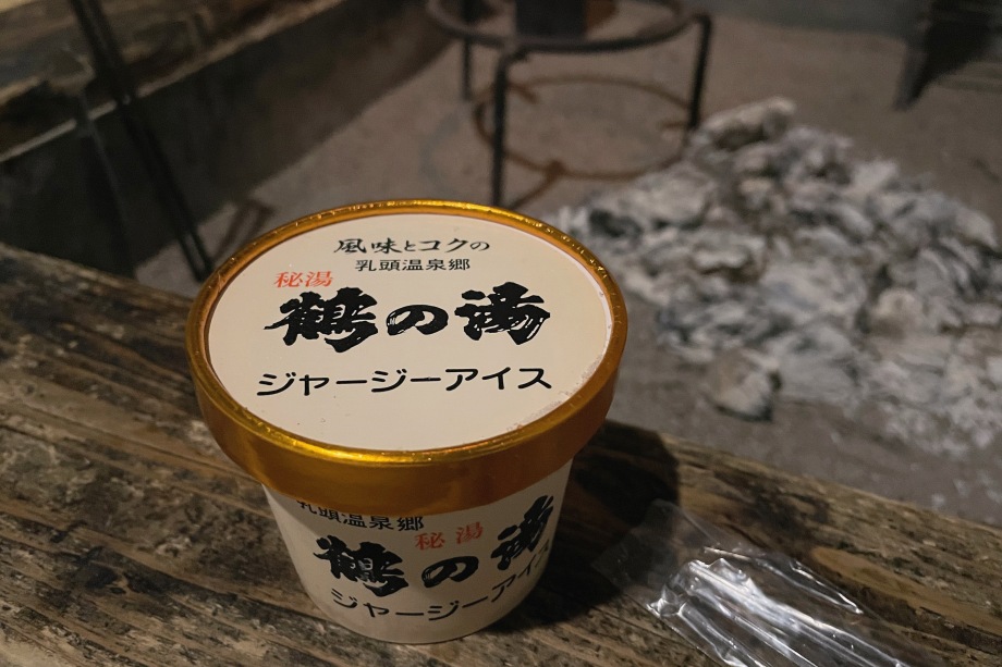晚飯後再泡一輪溫泉,順便走到鶴之湯溫泉事務所旁的商店買牛奶冰淇淋,一起在圍爐旁享受山上靜謐時光,還有油燈的燭火陪伴入眠。